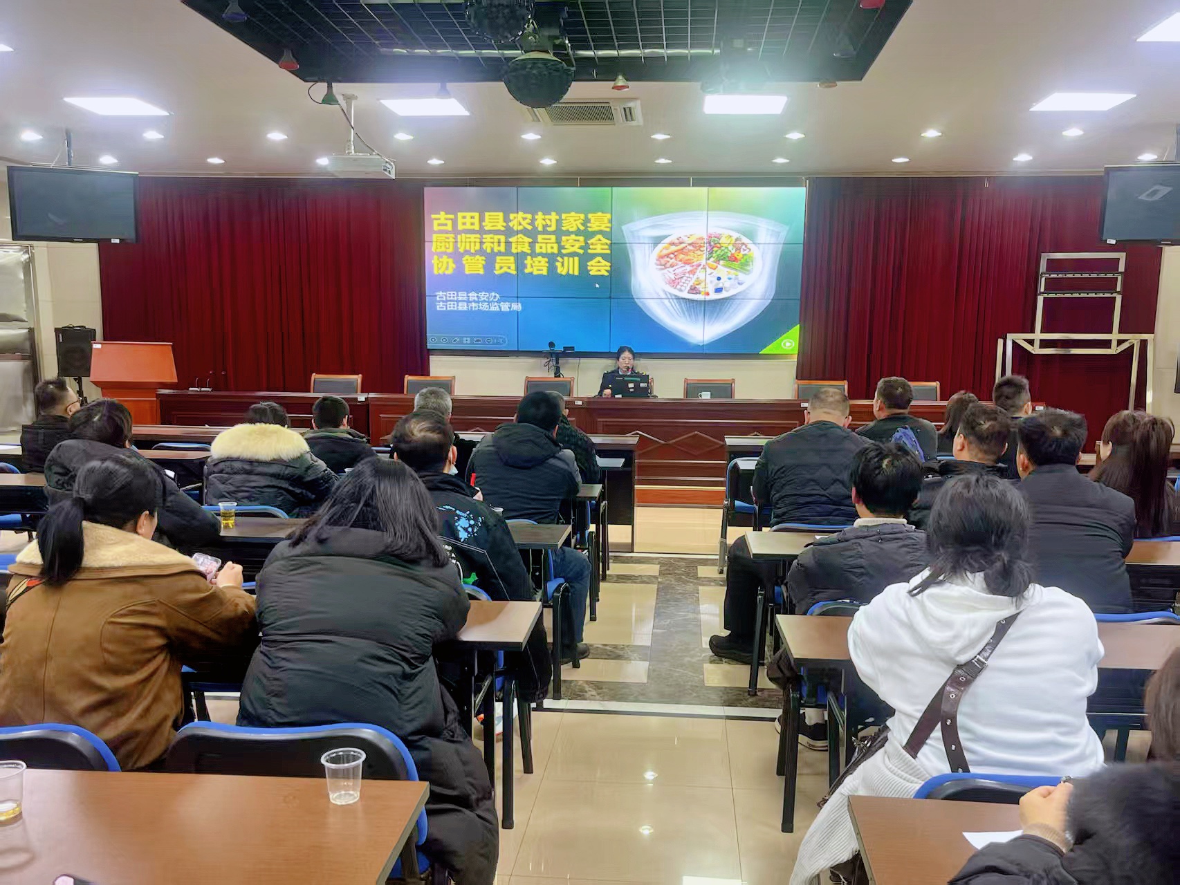 春节将至,年味渐浓,集体会餐、宴席宴请进入高峰期,为压实食物平安各方义务,规范春节期间宴席承办及农村集体会餐运营行为,发生食物平安群体性事务。古田县市场监管局结合古田县食安办细心组织召开2026年春节期间宴席承办单元、农村家宴厨师食物平安约谈培训会。辖区宴席衔接单元担任人及农村集体会餐厨师、各乡镇(街道)食物平安协管员等共计75人加入培训。